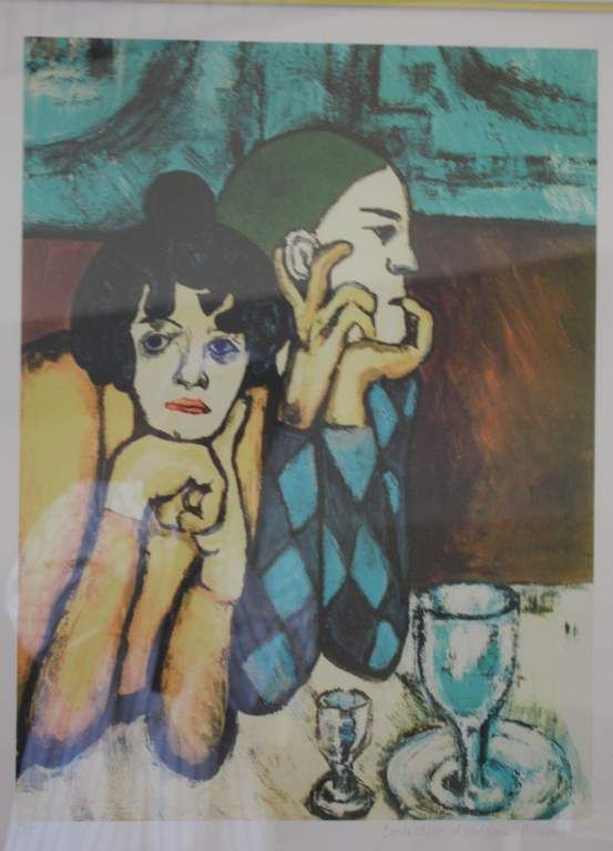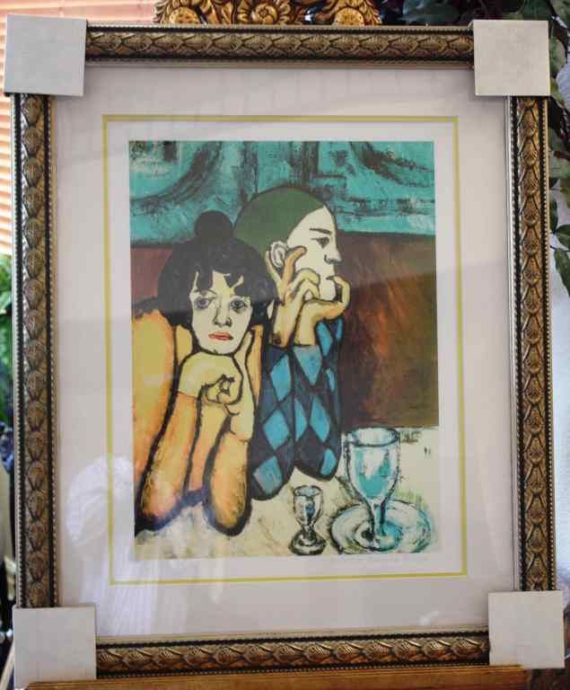 PABLO PICASSO - "HARLEQUINE AND HIS COMPANION"- LTD EDITION LITHOGRAPH - PROFESSIONALLY FRAMED AND MATTED - MINT CONDITION - ESTATE SIGNED WITH SEAL - FRAMED SIZE APPX 33 1/2 X 28