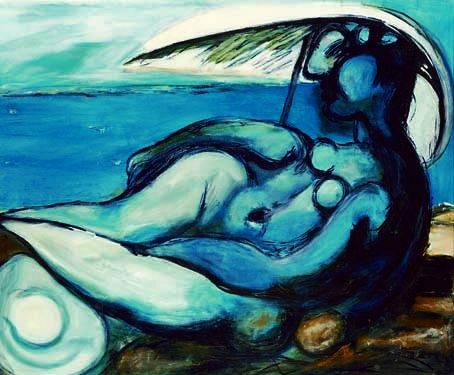 PABLO PICASSO "RECLINING NUDE AT BEACH" - NUMBERED LIMITED EDITION GICLEE' ON HEAVY ARCHIVAL WOVE PAPER - ESTATE SIGNED IN PENCIL "Collection Domaine Picasso" - EDITION SIZE 500 - PROFESSIONALLY FRAMED AND MATTED - MINT - 26" X 20" APPX PAGE