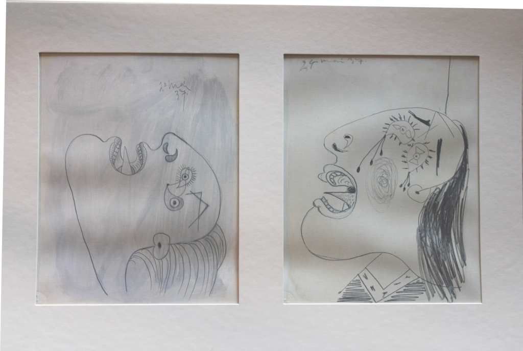 PABLO PICASS0 - "STUDY OF GUERNICA" - 1937 - 42 PRELIMINARY DRAWINGS ON PAPER - FROM WORLDWIDE ONE TIME LIMITED EDITION PRINTING OF 6000 COPIES - PROFESSIONALLY FRAMED AND MATTED - MINT CONDITION - SHEET SIZE 24" X 15 3/4" - APPROX. 28X20 FRAMED