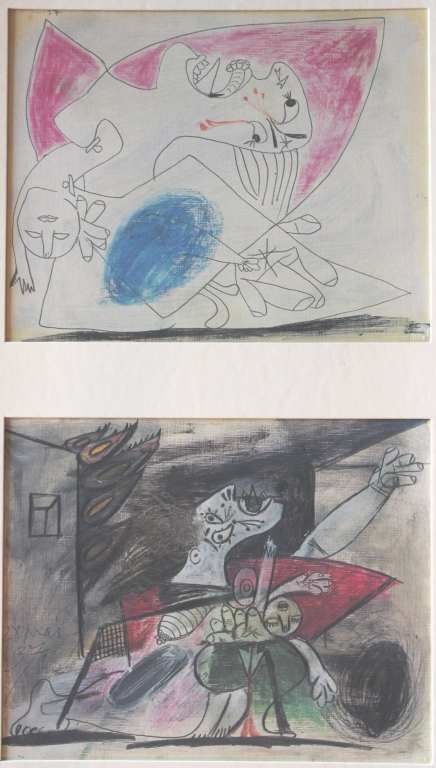 PABLO PICASS0 - "STUDY OF GUERNICA" - 1937 - 42 PRELIMINARY DRAWINGS ON PAPER - FROM WORLDWIDE ONE TIME LIMITED EDITION PRINTING OF 6000 COPIES - PROFESSIONALLY FRAMED AND MATTED - MINT CONDITION - SHEET SIZE 24" X 15 3/4" - APPROX. 28X20 FRAMED