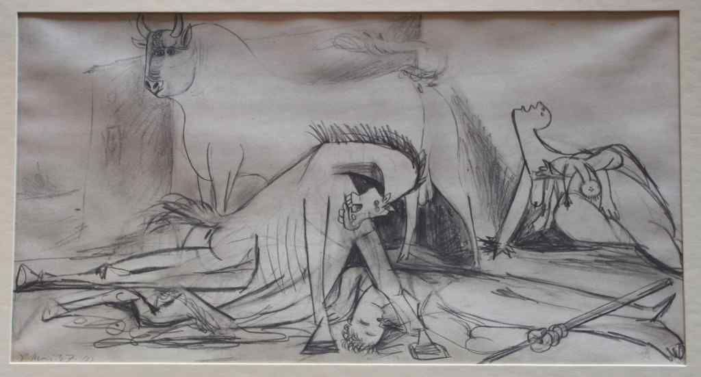 PABLO PICASSO - "STUDY OF GUERNICA" -1937 - FROM WORLDWIDE ONE TIME LIMITED EDITION PRINTING OF 6000 COPIES - PROFESSIONALLY FRAMED AND MATTED - MINT CONDITION - SHEET SIZE 24" X 15 3/4" - APRROX 28X20 FRAMED