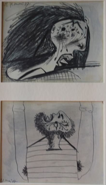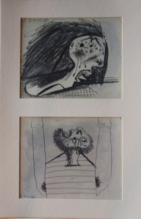 PABLO PICASS0 - "STUDY OF GUERNICA" - 1937 - 42 PRELIMINARY DRAWINGS ON PAPER - FROM WORLDWIDE ONE TIME LIMITED EDITION PRINTING OF 6000 COPIES - PROFESSIONALLY FRAMED AND MATTED - MINT CONDITION - SHEET SIZE 24" X 15 3/4" - APPROX. 28X20 FRAMED