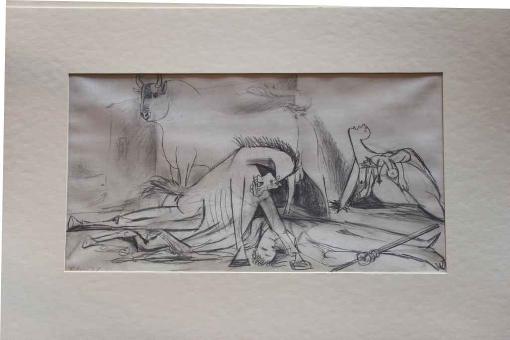 PABLO PICASSO - "STUDY OF GUERNICA" -1937 - FROM WORLDWIDE ONE TIME LIMITED EDITION PRINTING OF 6000 COPIES - PROFESSIONALLY FRAMED AND MATTED - MINT CONDITION - SHEET SIZE 24" X 15 3/4" - APRROX 28X20 FRAMED