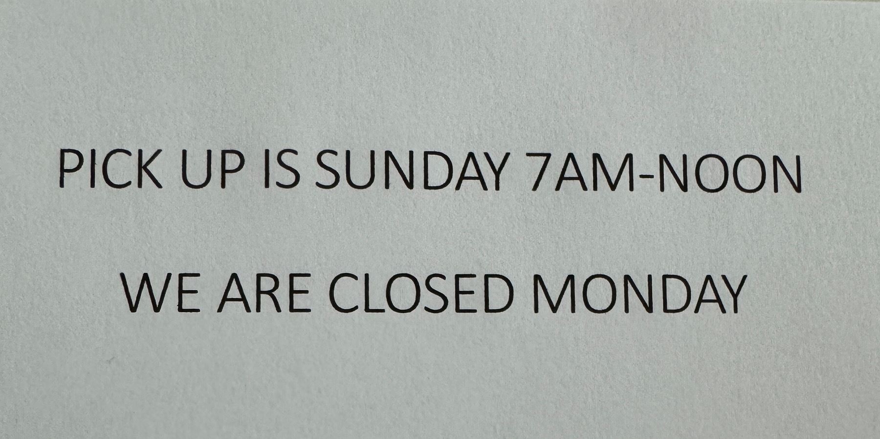 Pick up is Sunday 7AM-NOON Immediately Following the auction. IF you so do not pick up these hours we will charge your credit card 10% handling fee. Items will be considered abandoned.