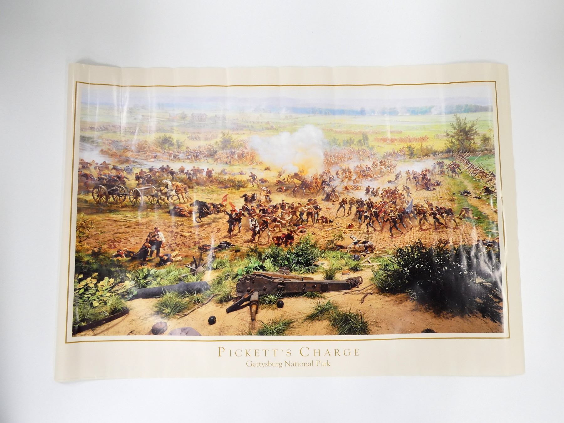 (1) "PICKETT'S CHARGE, GETTYSBURG NATIONAL PARK" POSTER, IN COLOUR, APPROX. 36" X 24". SEE PHOTOS.
