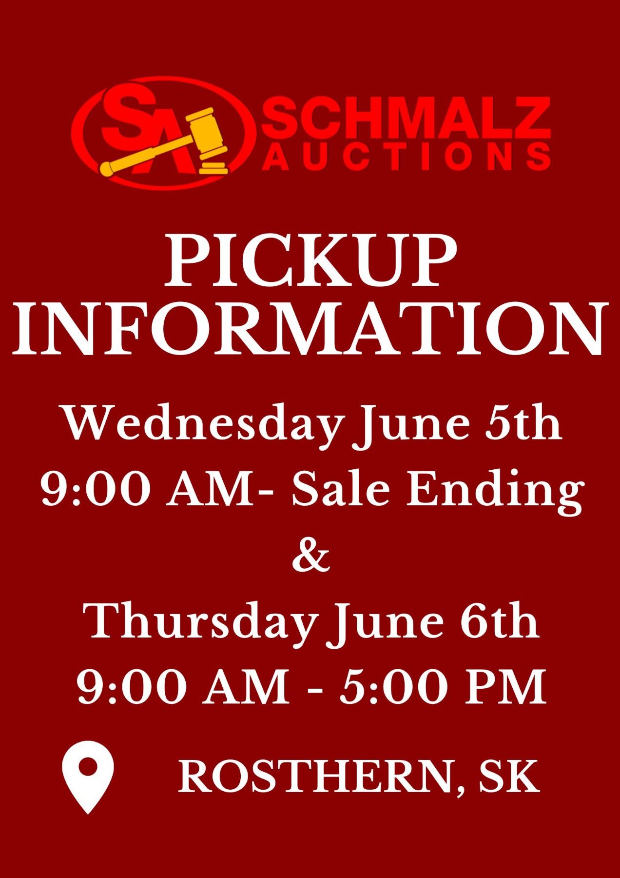 Pickup Information: Wednesday June 5th 9:00 AM – sale ending.