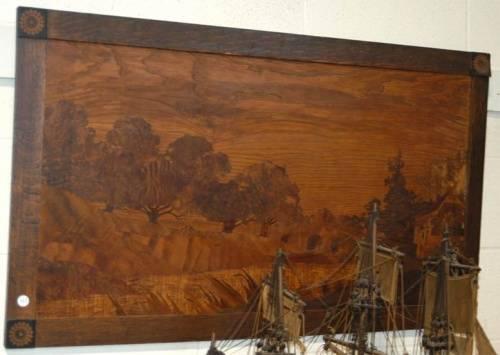 PICTORIAL INLAID WOOD PANEL 23X39, probably Germ
