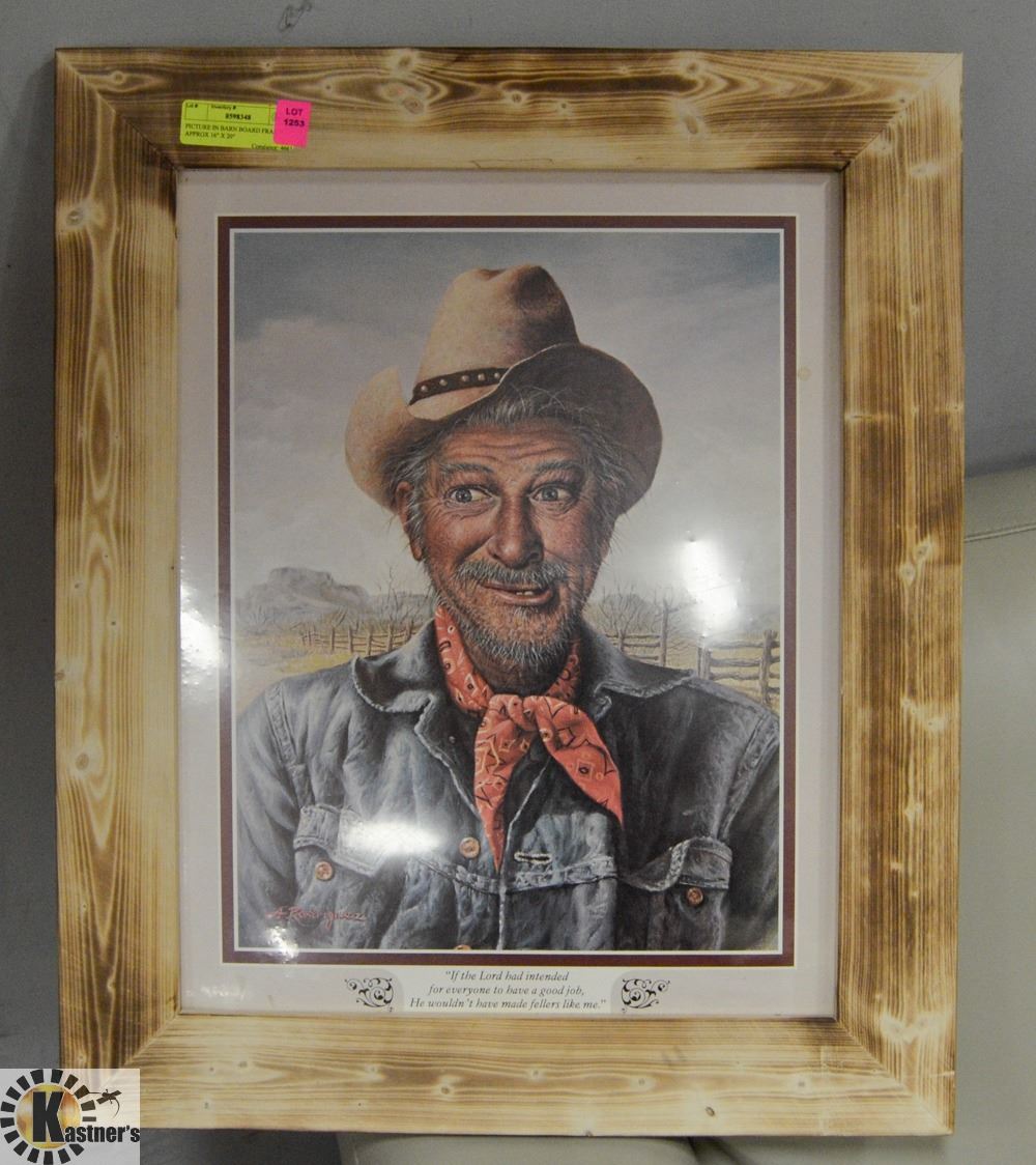 PICTURE IN BARN BOARD FRAME APPROX 16" X 20"