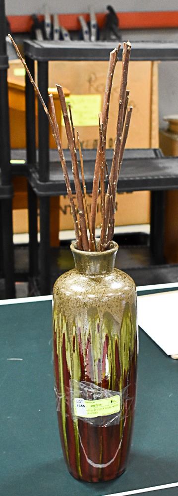 PIER 1 GLAZED POTTERY VASE WITH DECOR BRANCHES