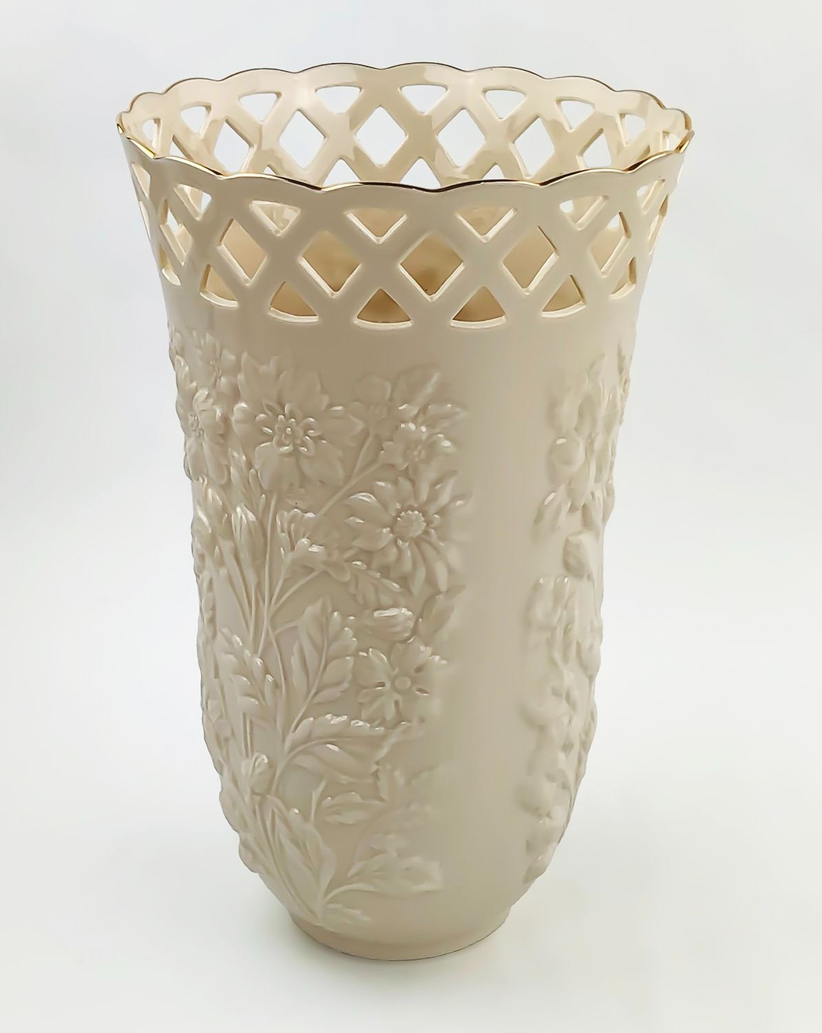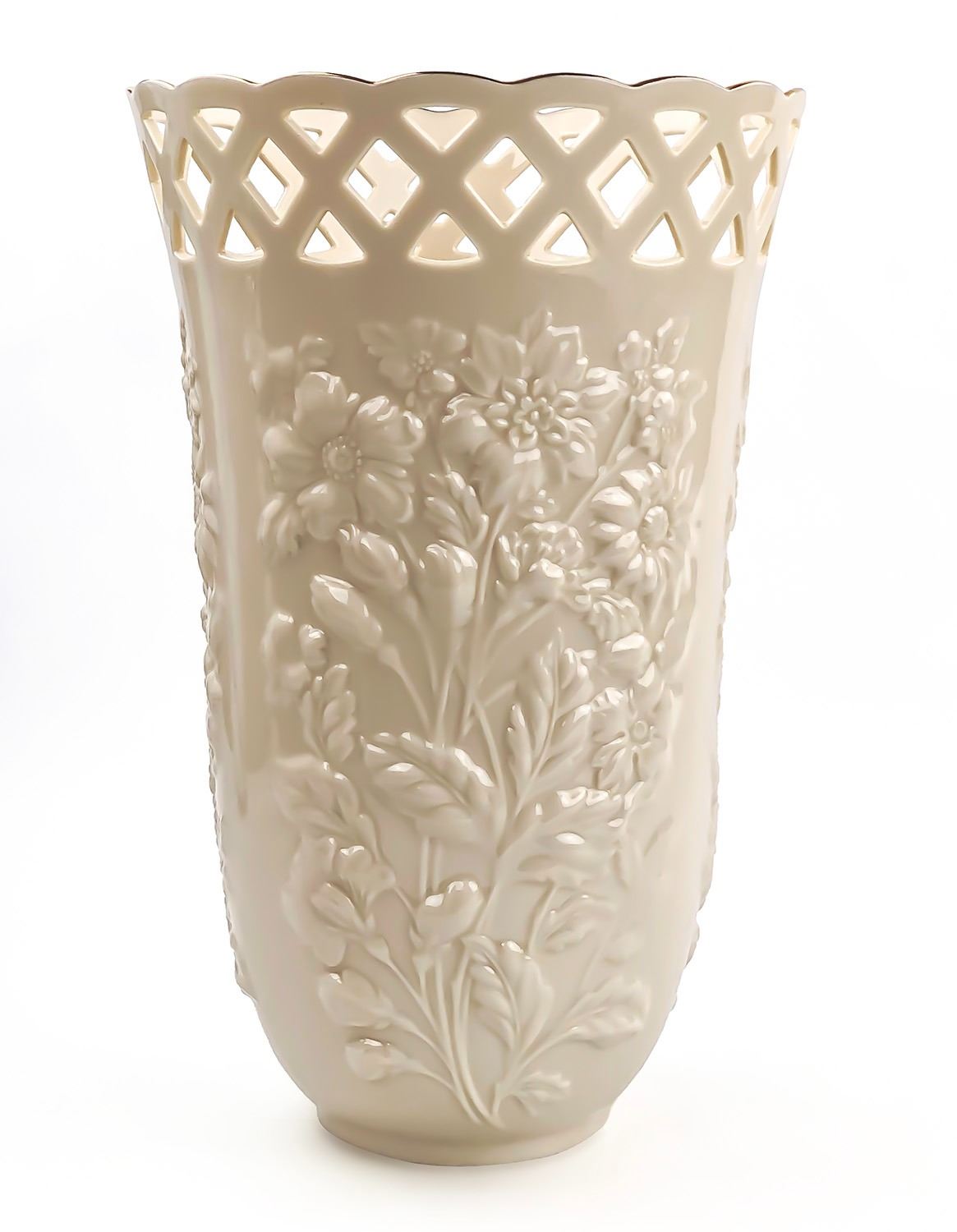 #8543 - LENOX CREAM COLOUR MADE IN USA VASE. HOME OR OFFICE DECOR. MEASURES: 11” (28 CM) TALL, 6.75” (17 CM) TOP DIAMETER, 3” (8 CM) BASE DIAMETER