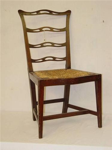 PIERCED RIBBON BACK SIDE CHAIR W/ RUSH SEAT - REPAIRS & IMPERFECTIONS;
