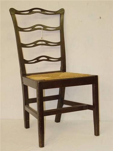 PIERCED RIBBON BACK SIDE CHAIR W/ RUSH SEAT - REPAIRS & IMPERFECTIONS;