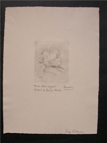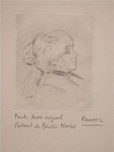 The work is Inscribed in pencil "Pointe Seche Originale, Portrait de Berthe Morist, Renoir" in the lower middle margin.