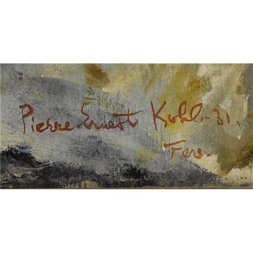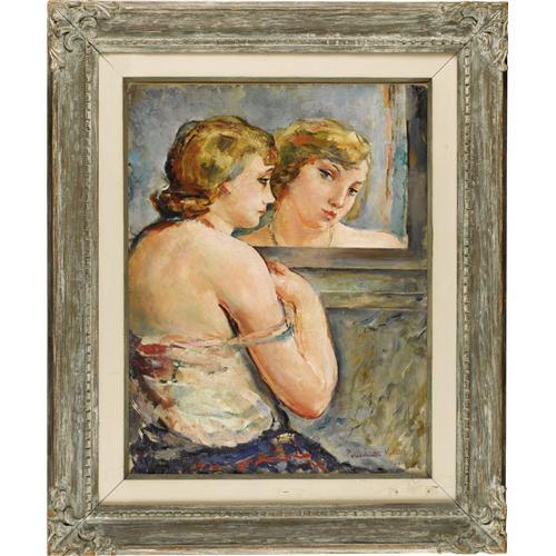 <B>PIERRE ERNEST KOHL</B></I> (French 1897-1985)<BR><I>Reflection,</B></I> 1931<BR>Oil on canvas<BR>25-3/4 x 19-3/4 inches (65.4 x 50.2 cm)<BR>Signed lower right: <I>Pierre Ernest Kohl 1931 / Fer.</B></I><BR><BR> <B>Condition Report:</B> original condition<BR><BR><b>Shipping:</b> Requires 3rd Party Shipping (<a target="_blank" href="http://www.heritageauctions.com/common/shipping.php">view shipping information</a>)