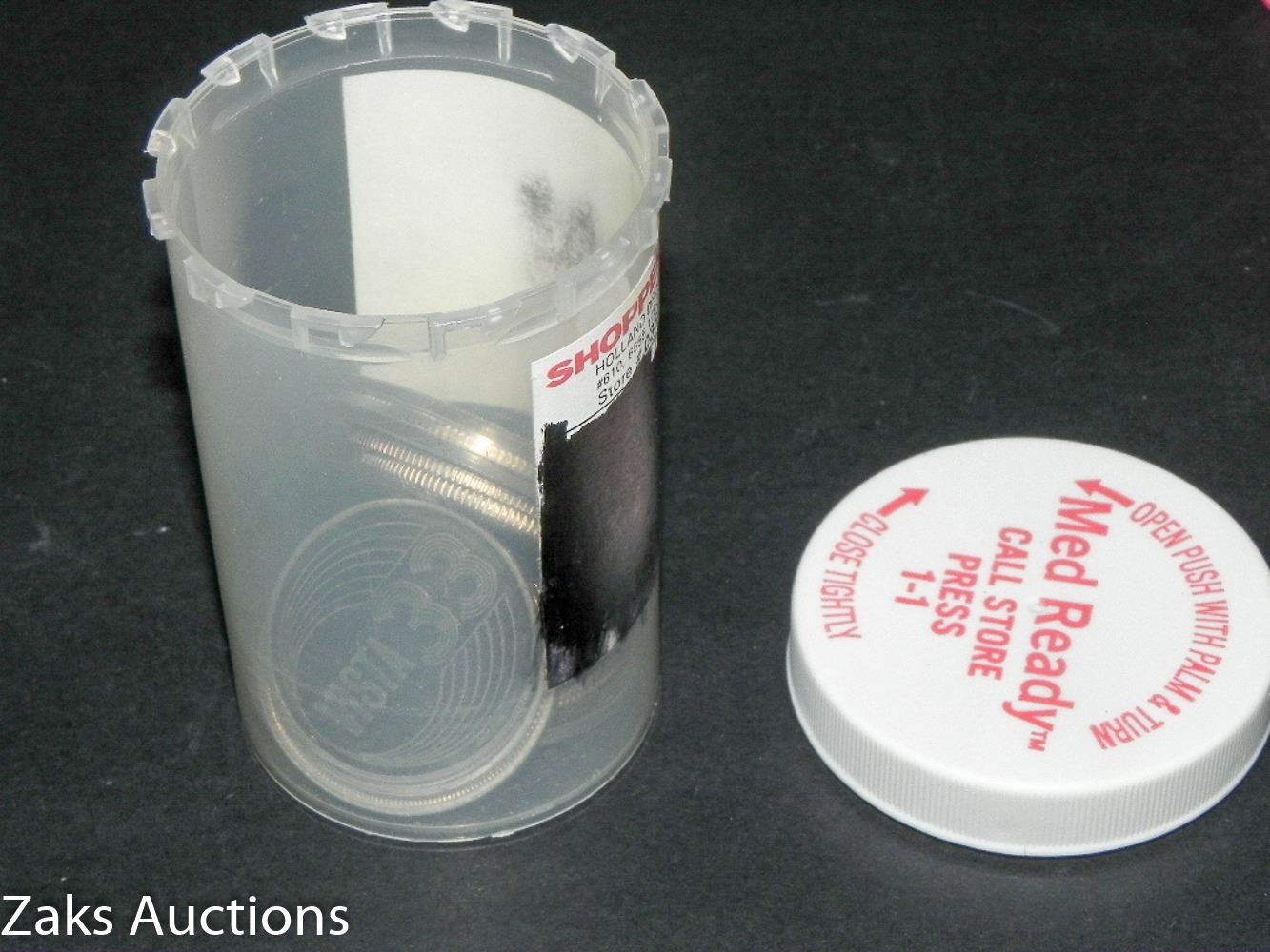 PILL BOTTLE WITH TOKENS AND MEDALLIONS (OILERS TOO)