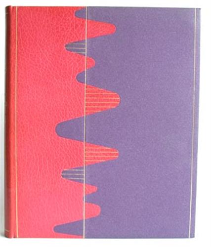 PILLET, Roger.- Les oraisons amoureuses de Jeanne-Aurélie Grivolin Lyonnaise. Illustrées de pointes sèches originales par Paul-Émile Bécat. ( Paris), Les Heures claires, 1957. In-4°. Relié d'après une maquette d'Isy Brachot : demi-maroquin rose avec découpe ondulée séparant les plats de papier mauve ornés de filets dorés horiz. ou verticaux, dos lisse, gardes de papier mauve, tête dorée, couv. et dos cons. (dos lég. passé). Sous étui.