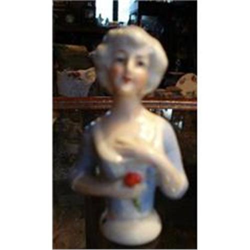 LOVELY IN STYLE AND COLOR PIN CUSHION HALF DOLL,HOLDING THE ROSE - EXCELLENT CONDITION - MEASURES ABOUT 3 1/4" LONG, US BUYER TO PAY 7.00 FOR SHIPPING PLUS INSURANCE.THANKS.
