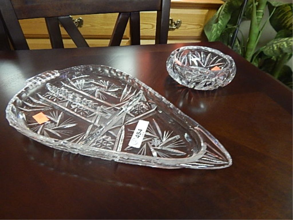 PIN WHEEL CRYSTAL SERVING DISH AND ASHTRAY