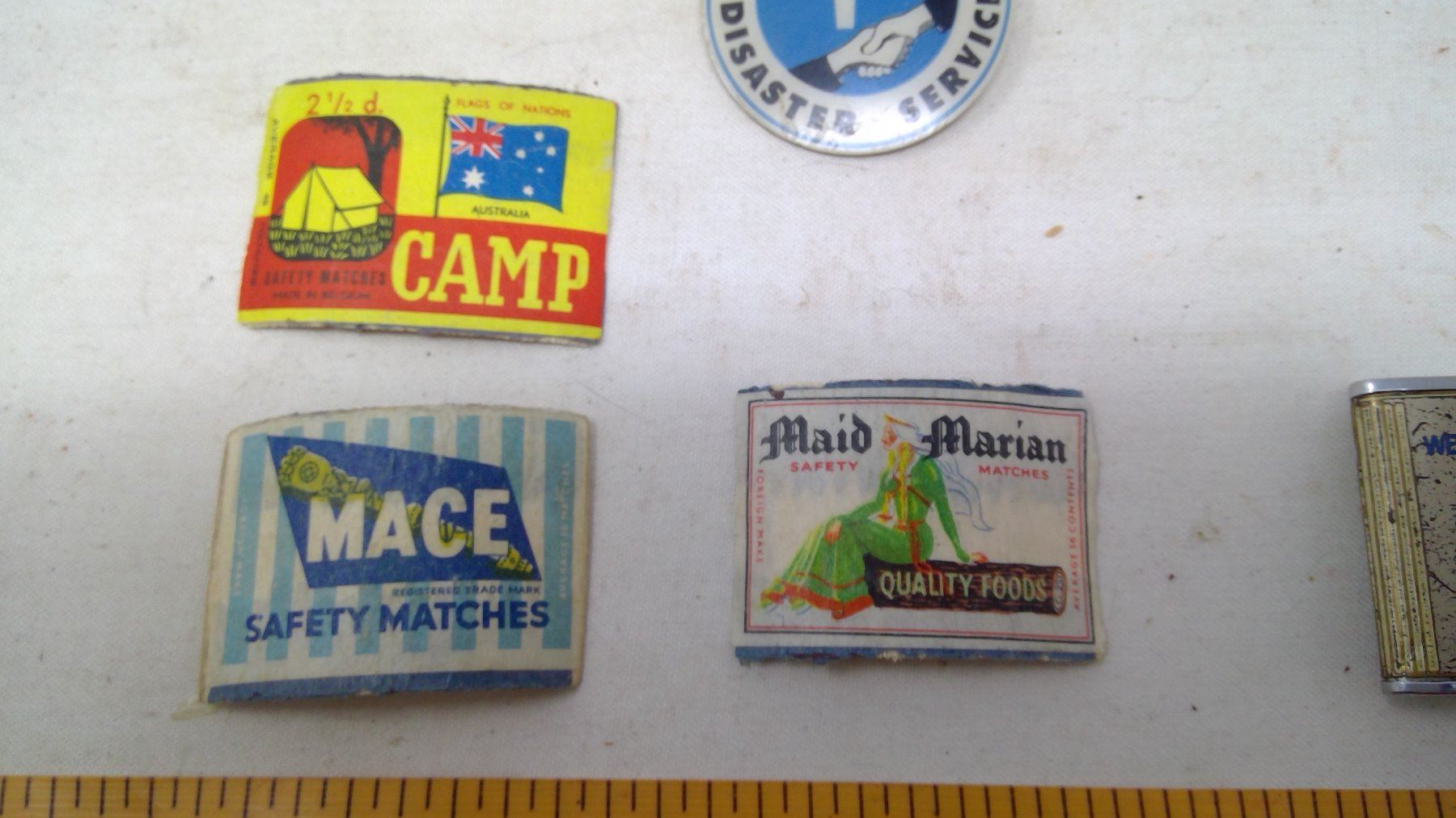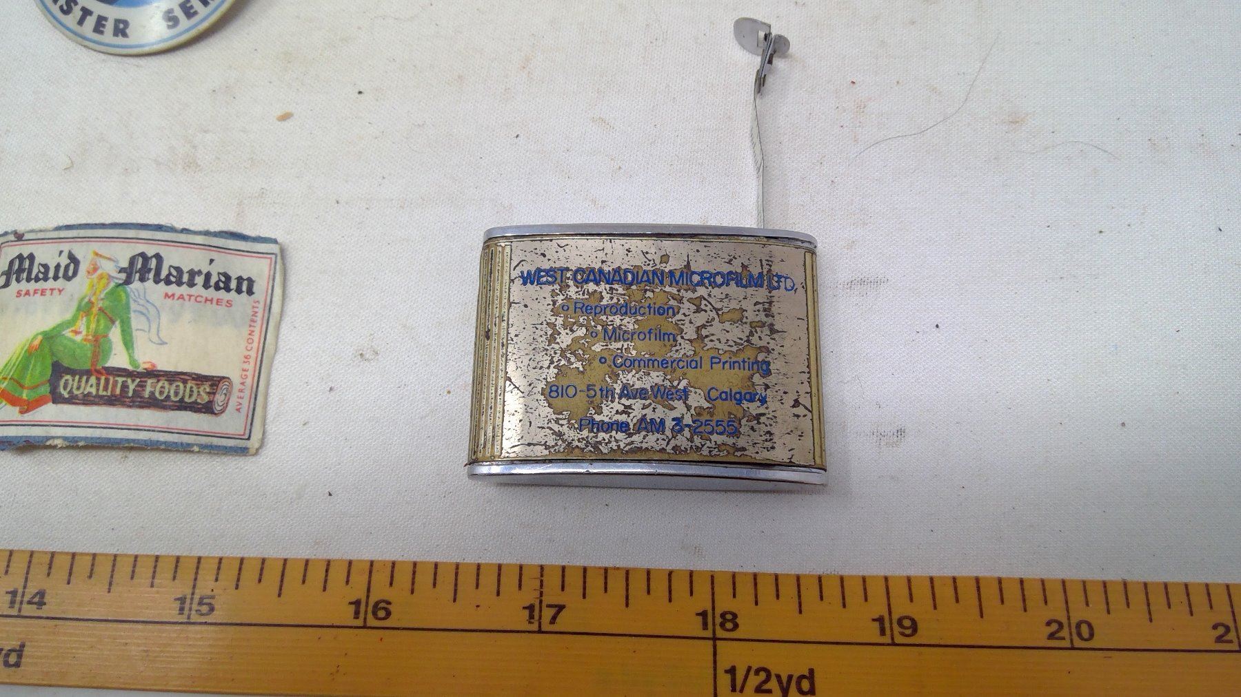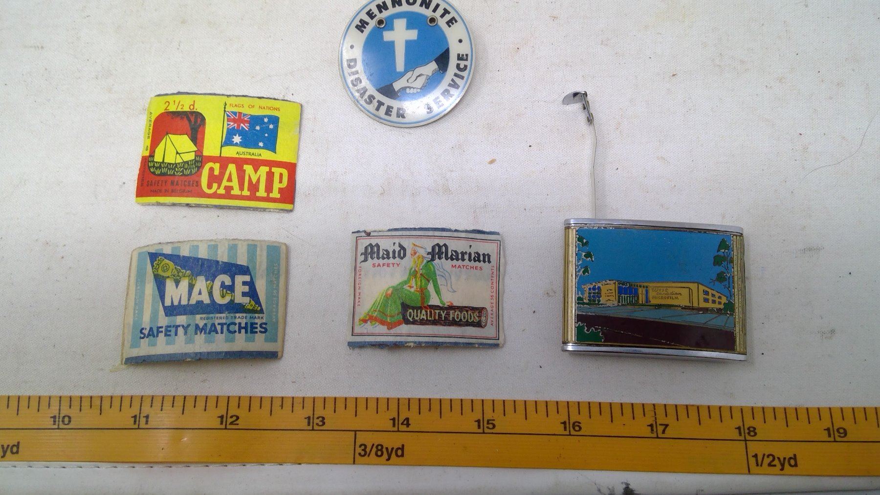 PINBACK, MATCHBOX AND TAPE MEASURE