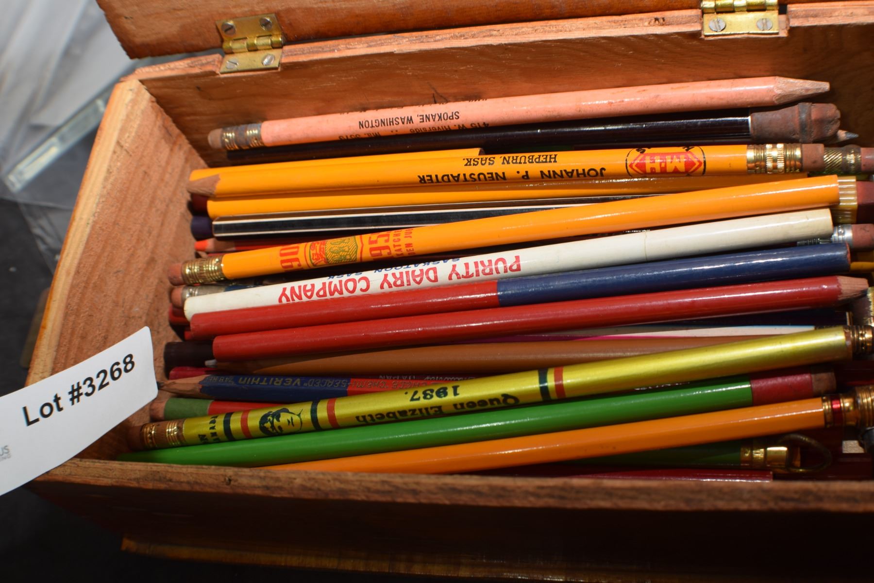 PINE BOX OF NOS VINTAGE PENCILS MASSEY HARRIS , 1937 CORONATION ETC
