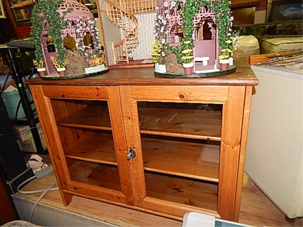 PINE CABINET - GLASS FRONT - 2 DOORS