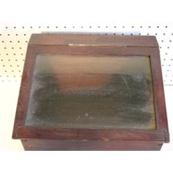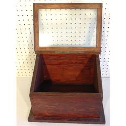 PINE DISPLAY CASE. Inclined glass lid. 9.5" H (in back), 13.5" W, 10.5" D