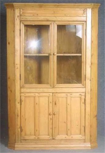 PINE DOUBLE DOOR CORNER CABINET- height:78" width: 52", depth:23"