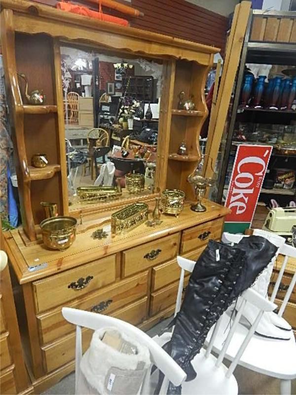 PINE DRESSER WITH MIRROR - 7 DRAWER