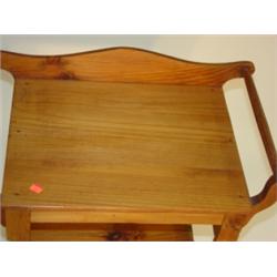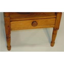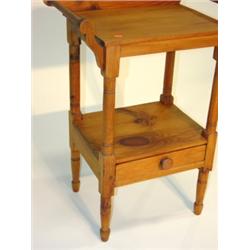 Pine single drawer washstand. Drawer is on bottom in stretcher. Recently refinished. 32" H, 21.5" W, 14.5" D