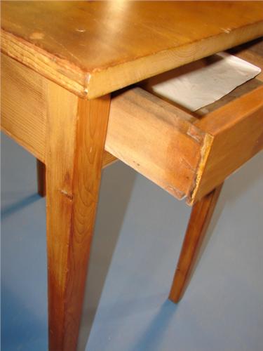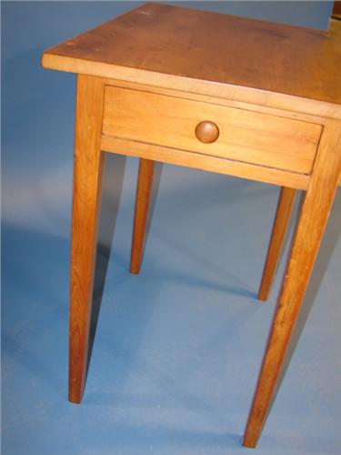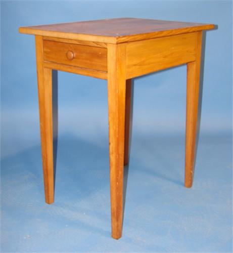 PINE SINGLE DRAWER WORK TABLE. Single dovetailed drawer. Tapered legs. 30” H, 19” W, 25.5” D