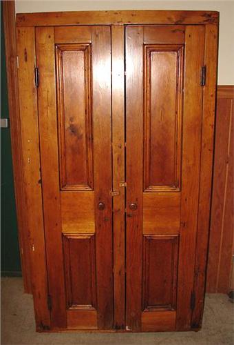 PINE WALL CUPBOARD. Eastern Shore two door pine wall cupboard. Four shelves on interior. Two blind doors. 83"H, 35"W, 12"D
