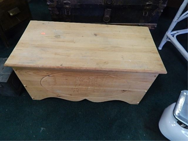 PINE WOOD CHEST - TEDY BEAR CARVING IN FRONT