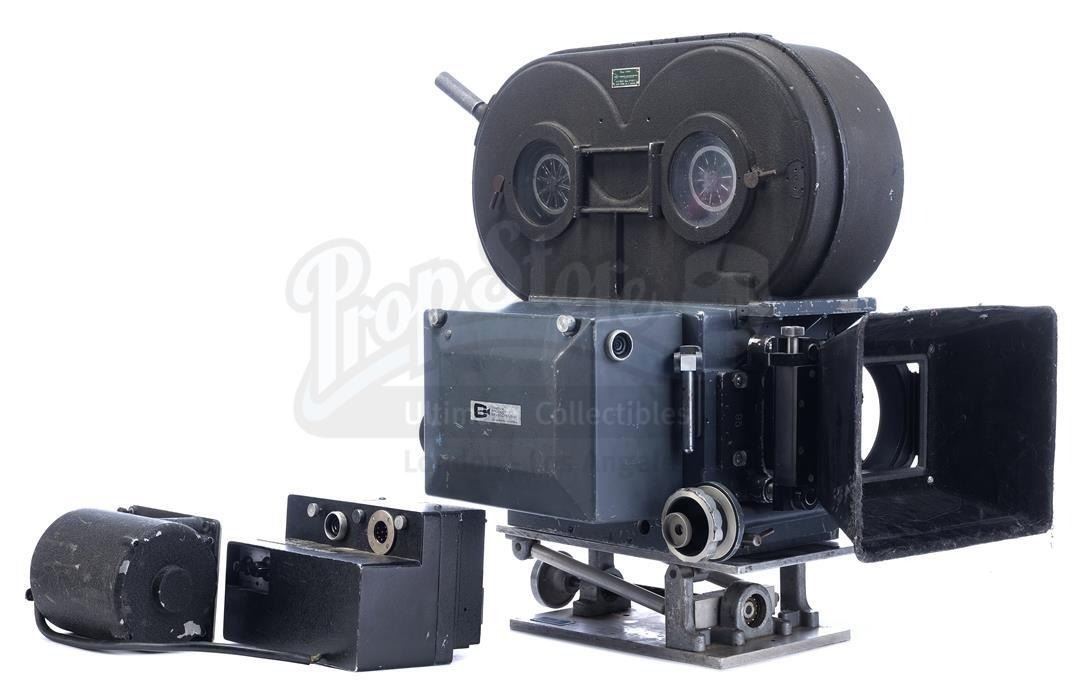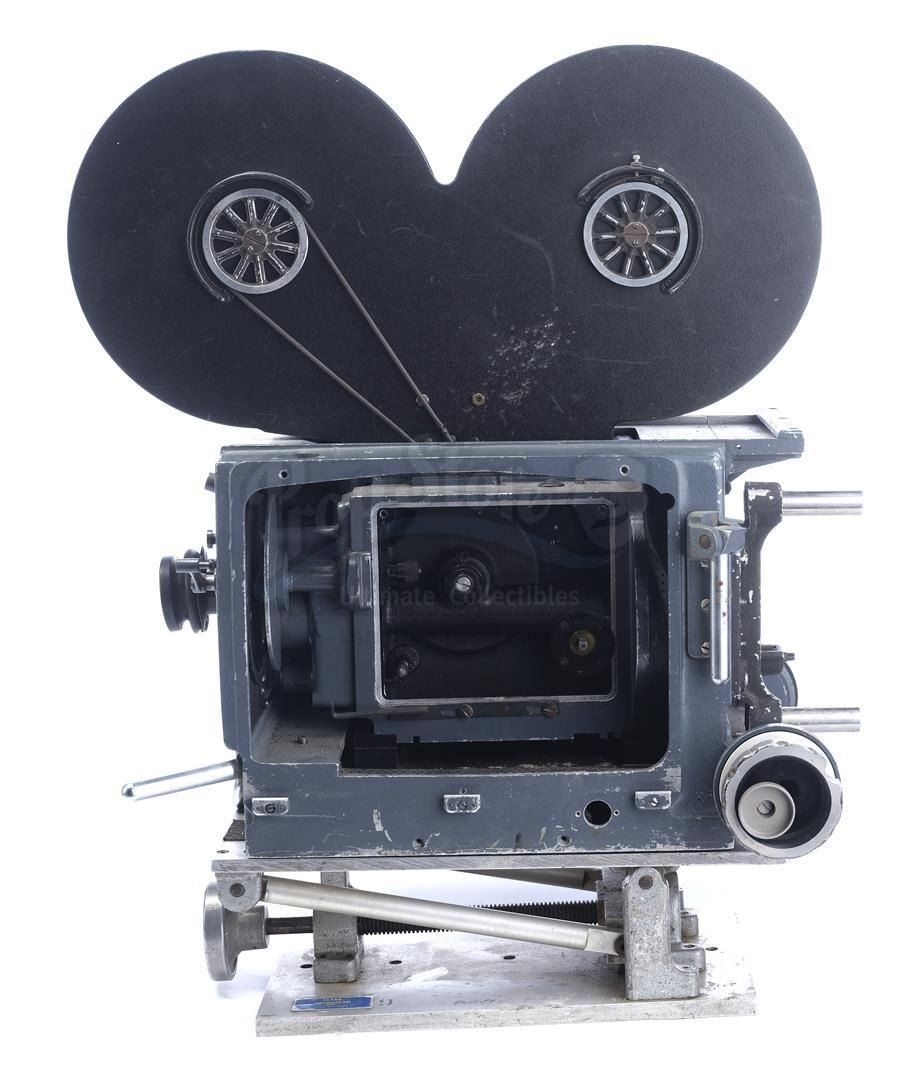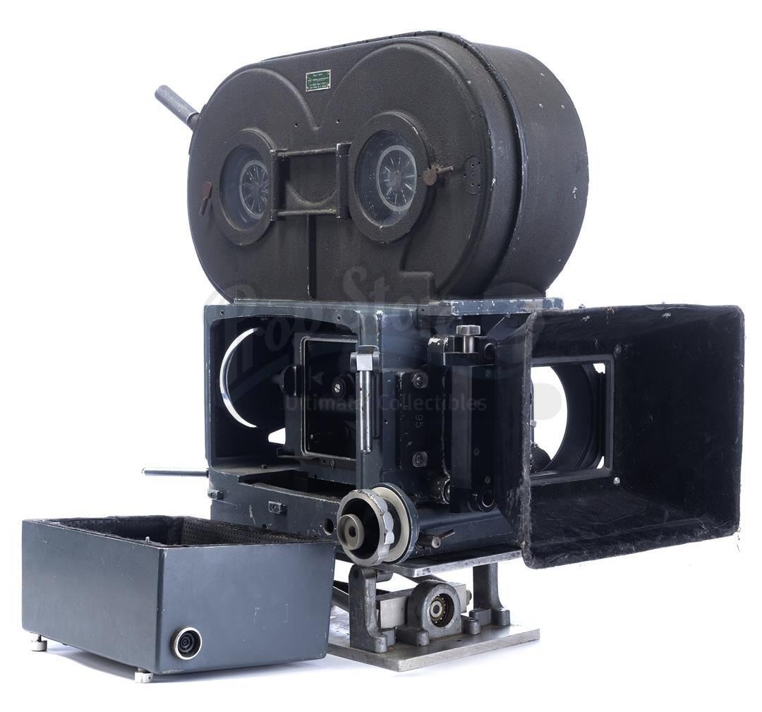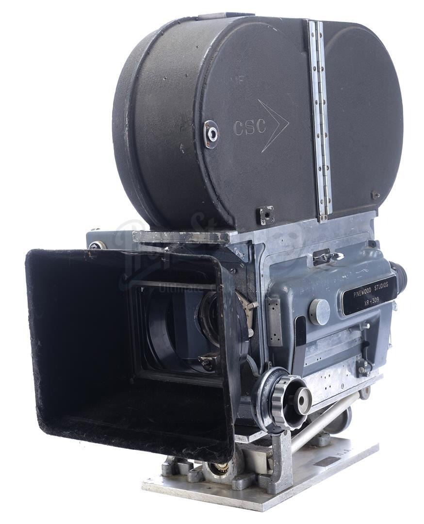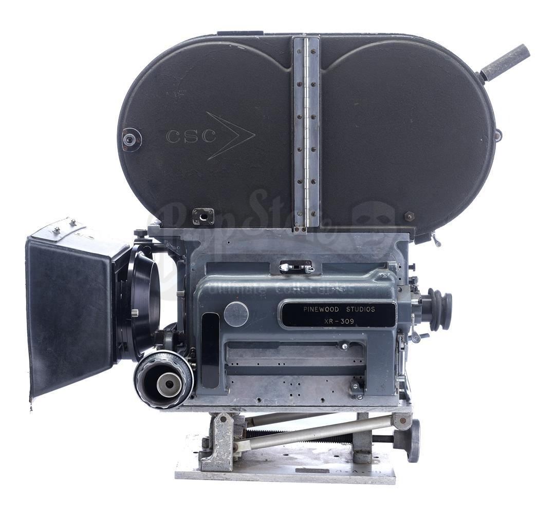 A Pinewood Studios Mitchell BNCR camera from the United Kingdom's famous film and television production facility Pinewood Studios. First introduced in 1967, the BNCR was the groundbreaking reflex successor to the industry standard BNC, allowing cinematographers to view and set up their shots as directly seen through the camera's lens without having to move the body of the camera.