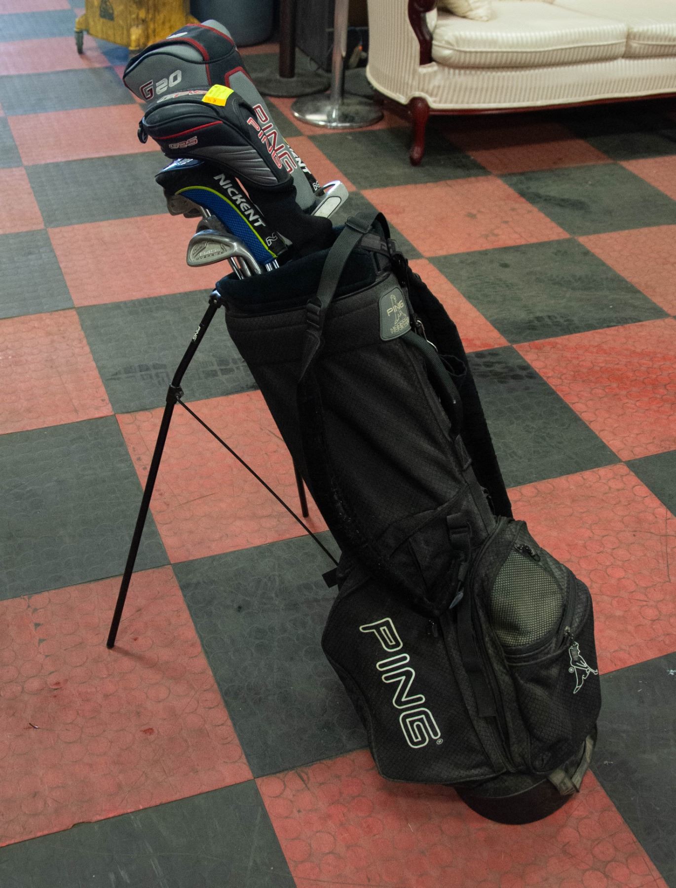 PING GOLF BAG WITH WILSON PROSTAFF IRONS, PING