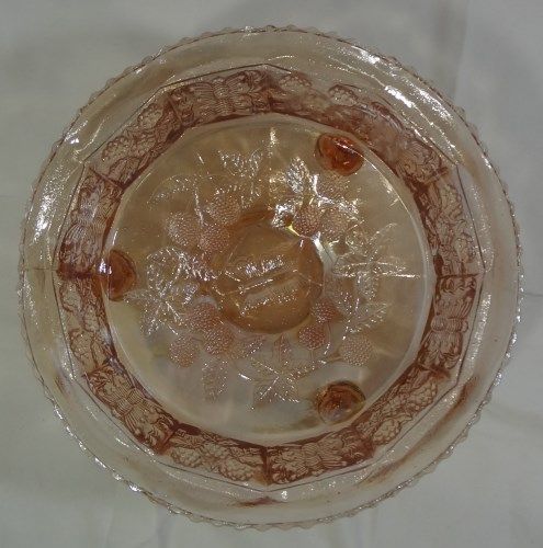 PINK CARNIVAL GLASS-BUTTERFLY AND BERRY DESIGN BOWL