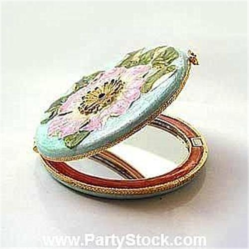 PINK COMPACT FLOWER MIRROR GOLD SWAROVSKI CRYSTAL<p>Height: 2.75 INCH ROUND