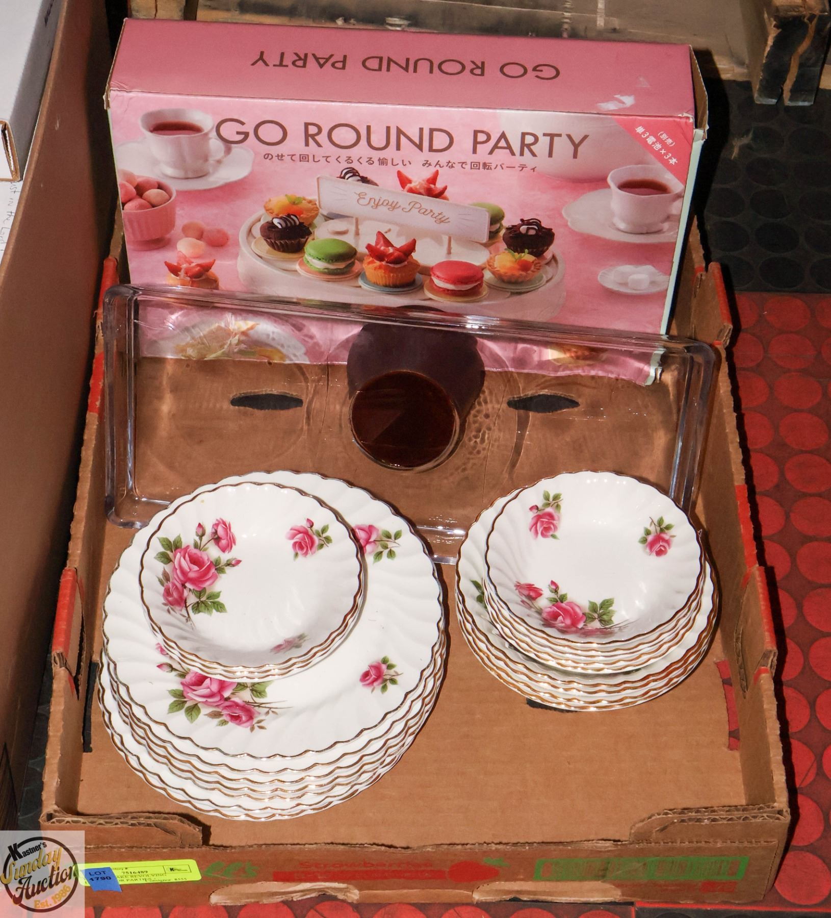 ELEVATED GLASS DESSERT TRAY + BONE CHINA GOLD TRIMED **ALL ITEMS MUST BE REMOVED BY 5PM SATURDAY, JUNE 28th 2025. ALL REMAINING ITEMS WILL BE SUBJECT TO A $6.00 PER DAY STORAGE CHARGE. ANY ITEMS REMAINING AFTER MONDAY, JULY 14TH 2025 WILL BE CONSIDERED FORFEITED. NO REFUNDS WILL BE ISSUED FOR FORFEITED ITEMS. TO SCHEDULE A PICK UP APPOINTMENT CLICK HERE