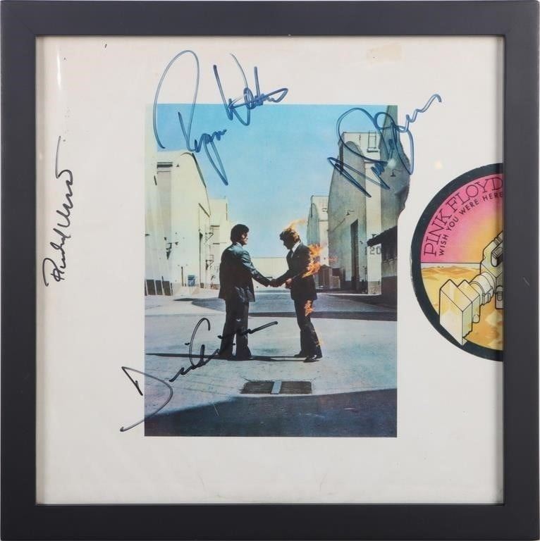 Pink Floyd ENTIRE BAND autographed "Wish You Were Here" album cover. Autographed by Roger Waters, David Gilmore, Nick mason, and Richard Wright. Album is from Harvest Records 8E 072 96918. Vinyl record not included.