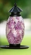 PINK MOSAIC GLASS BIRD FEEDER - 10.5"H 7"W 7"D - GLASS & ALUMINUM