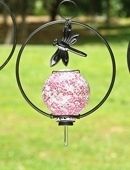 PINK MOSAIC GLASS HUMMINGBIRD -FEEDER12"H 8.5"W 4"D - GLASS & ALUMINUM