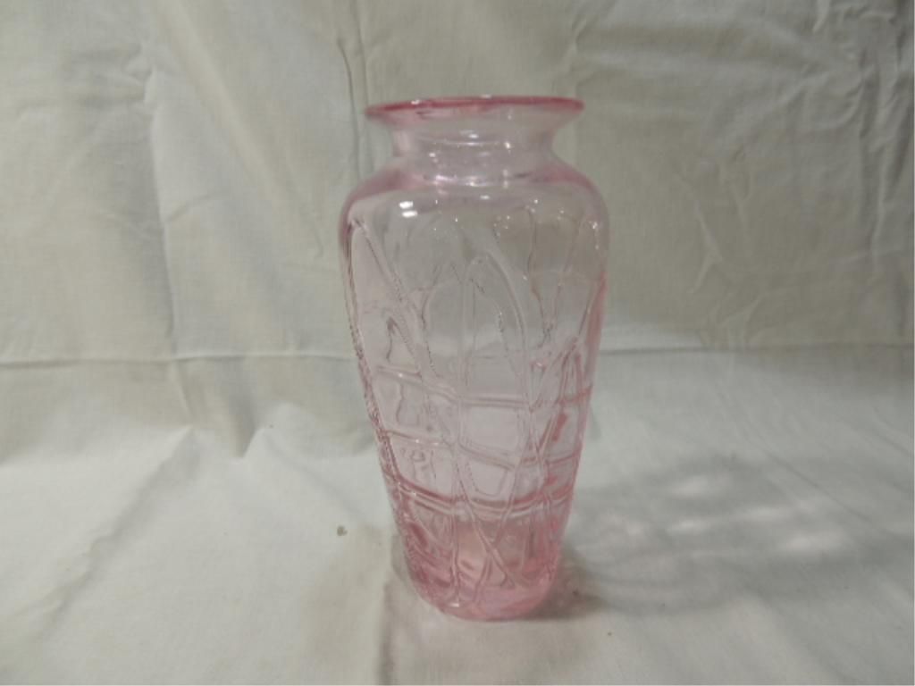 LIGHT PINK GLASS VASE 10" TALL. SEE PICTURE FOR DETAILS.