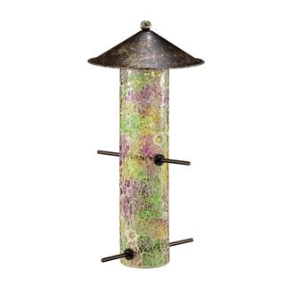 PINK MOSAIC GLASS BIRDFEEDER - 12.5" x 6" x 6" - IRON, GLASS & SHEET METAL