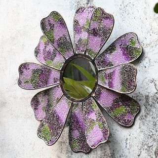 PINK MOSAIC GLASS FLOWER MIRROR - 20.5" x 20.5" x 3" - IRON, GLASS & SHEET METAL