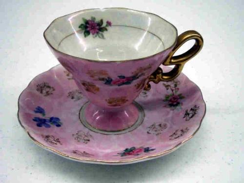 PINK & OYSTER FLORAL CUP & SAUCER SET