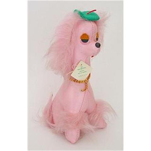 French Poodle, made of leather-type material, 7? tall, has ?Made in Japan? tag on bottom and on paper hangtag, 1950s. Kids in the 1950s often used toys such as this to collect autographs of their friends at school.