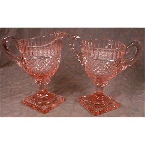 <tr><td>Title:PINK Pattern Glass Footed Cream & Sugar ANTIQUE</td></tr>