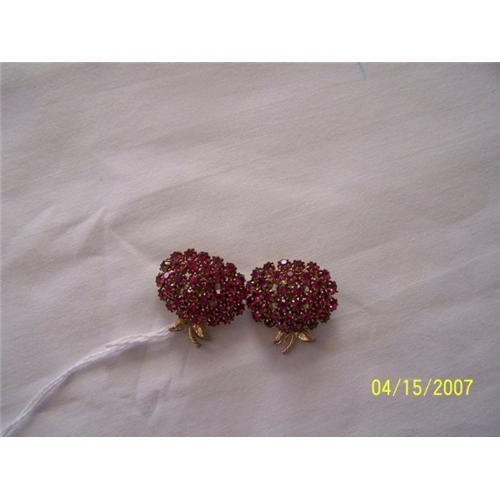 Up for sale are a gorgeous pair of ~Pink Rhinestone~ Clip on Earrings. These are high quality comparable to Weiss. They are accented with a goldtone leaf coming off the earring. There are no missing or dead stones. The front and back are in excellent condition.