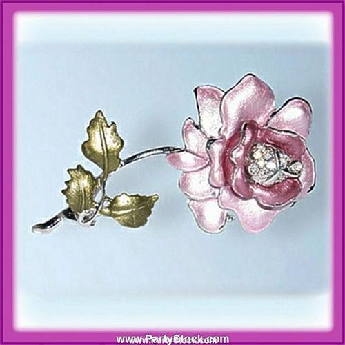 PINK ROSE PIN BROOCH 24K GOLD SWAROVSKI CRYSTALS