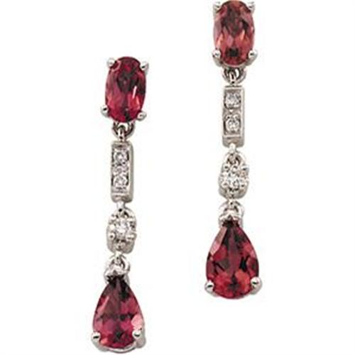 14k White Gold Earrings each featuring an Oval and Pearlshaped GENUINE PINK TOURMALINE and 3 Diamonds. The PINK SAPPHIRE Total Weight = 1.50 CARATS and the Diamond Total Weight = .06 Carats.