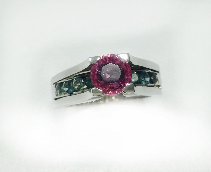PINK SAPPHIRE RD 1.69CT, 14K W/G RING 7.83GRAM / ALEXANDRITE RD0.63CT